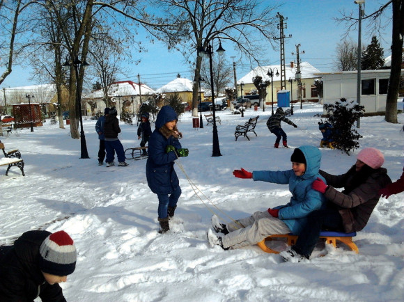 Csodálatos eseménnyel zártuk az első félévet: meglátogattuk újszentesi barátainkat és egy kellemes, élménydús délelőttöt töltöttünk együtt. Miután köszöntöttük a házigazdáinkat, bemutatták nekünk az iskolájukat. Több osztálytermet, irodát, szaktantermet megtekintettünk, megcsodáltuk a hatalmas tornatermet, a helyi televízió stúdióját. Meglátogattuk Újszentes nevezetességeit, történelmi emlékműveit, majd a központi gyermekparkban fergetes hócsatázásban, szánkózásban volt részünk. Visszatérve az osztálytermekbe a szülők és nagyszülők meglepetéssel vártak minket: forró teával ötletesen elkészített poharakban, farsangi fánkkal, sós kiflivel. Farsangi éneket tanultunk, beszélgettünk, játszottunk, meghívtuk barátainkat egy temesvári közös farsangi mulatozásra. Az előkészítő, első és második osztály február 13-án, a harmadik és negyedik osztály pedig február 18-án vesz részt a farsangi ünnepségeinken. Szeretettel várjuk őket a következő találkozóra. (Pál Krisztina tanítónő)