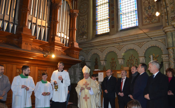 A szentmise végén Pál József Csaba megyéspüspök, Soltész Miklós államtitkár, Farkas Imre alpolgármester, Marossy Zoltán Temes megyei RMDSZ-elnök, Tamás Péter tiszteletbeli konzul és Gazda István református lelkész, az Új Ezredév gyülekezet lelkipásztora közösen vonultak fel a csigalépcsőn a templom kórusába, ahol a Főpásztor megáldotta a felújított orgonát, majd üdvözölte az énekkar tagjait, valamint Bajkai-Fábián Róbert, Dumitresc Emil és Dumitresc Norbert orgonistákat, akik a szentmise zenei szolgálatában közreműködtek.