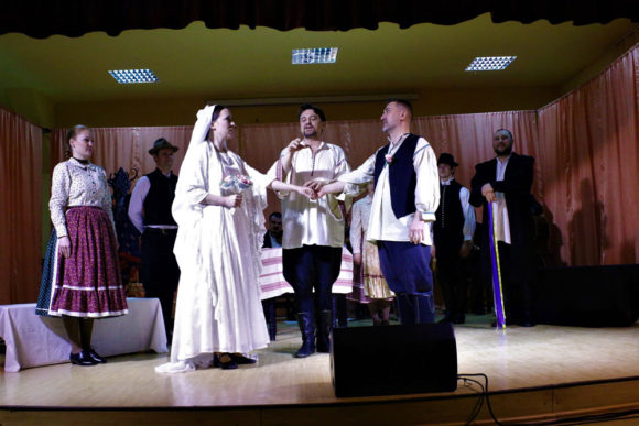 Ilyenkor farsang idején előszeretettel „jelenik meg” egy-egy mulatságon a patáslábú, ezúttal mégsem őkelme látogatott el a Béga-parti kis faluba, hanem az Aradi Kamaraszínház, a békéscsabai Tabán Táncegyüttes és a szabadkai Juhász Zenekar által a Szórvány Kulturális Karaván keretében létrehozott színpadi előadással örvendeztették meg a szervezők az óteleki közönséget. Bebizo- nyosodott, hogy van értelme, van kinek bemutatni vidéken is egy-egy színpadi produkciót, az óteleki közönség a tánc, élő zene és a művészi alakoskodás finom ötvözeteként létrehozott, könnyed, mégsem primitív előadásnak tapsolhatott. Életszerűen idézték meg a színművészek, táncosok az egykori falusi lakodalmak hangulatát, Tarcsa Marcsa (Éder Enikő színművésznő nagyszerűen előadott, sorozatos átváltozásainak lehettek tanúi a nézők) és Lőködi Gyurka (Harsányi Attila Jászai Mari-díjas színművész igen hitelesen elevenítette meg a parasztlegény figuráját) egybekelése kiváló keretet nyújt az esemény fontos mozzanatainak a karikírozására, és több Móricz-elbeszélésből merítve, a mókázásra. A vőfély, koma Katkó Ferenc színművész alakításában mindig a helyzet magaslatán, a másik koma Tege Antal szintén amikor kell “veszi a lapot”. Összességében egészséges humorral fűszerezett, jó hangulatú komédiát hozott Ótelekre az Aradi Kamaraszínház Szórvány Kulturális Karavánja, amely a Magyar Kormány, a Miniszterelnökség Nemzetpolitikai Államtitkárság, a Bethlen Gábor Alapkezelő Zrt. és az Arad Megyei RMDSZ partnerségében jöhetett létre. Az előadást fergeteges táncház követte.