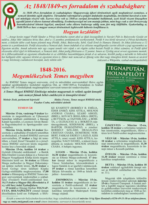 Az 1848/1849-es forradalom és szabadságharc – MEGEMLÉKEZÉSEK