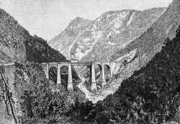 Zsittin viadukt, metszet, rajzolta Cserna Károly, fába metszette Morelli Gusztáv