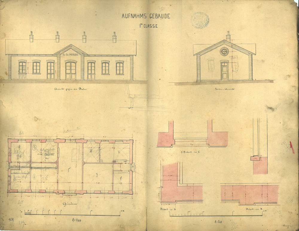 Nagyszentmiklós állomás terve (I. osztályú felvételi épület). Pontosan ilyen épült Perjámoson is
