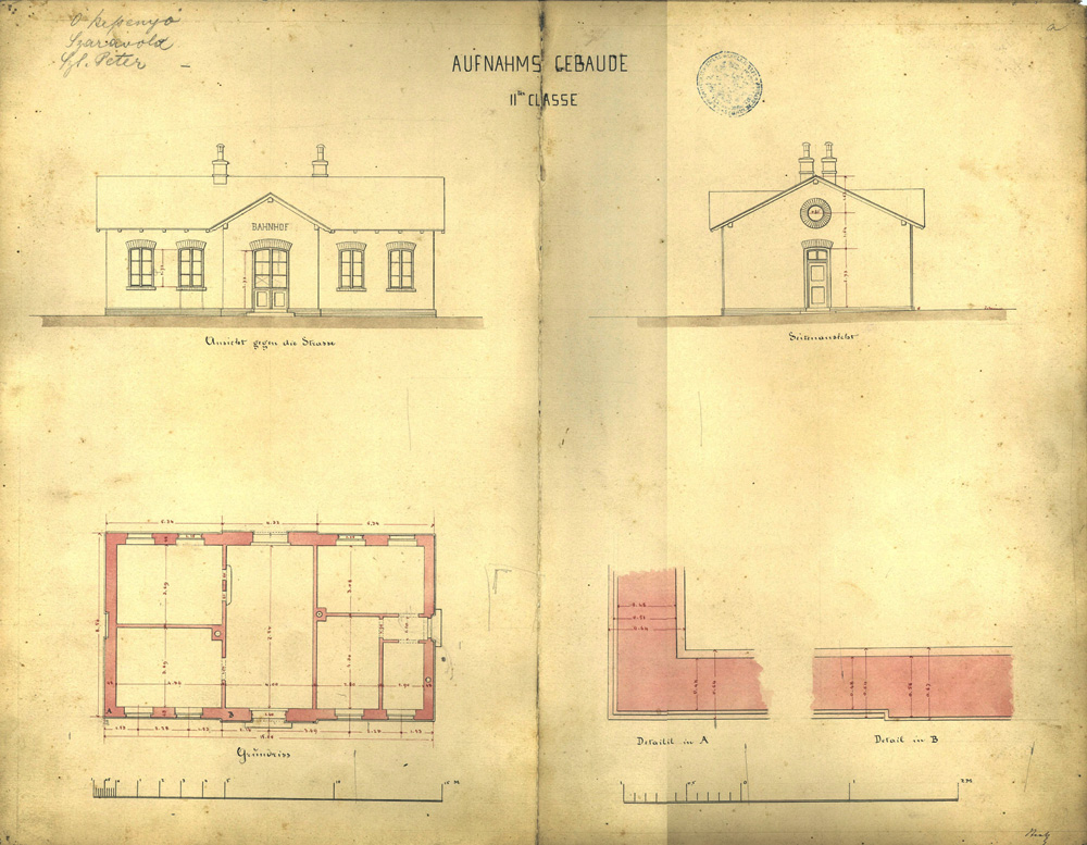 II. osztályú felvételi épület terve (Óbessenyő, Sárafalva, Ráczszentpéter állomások)
