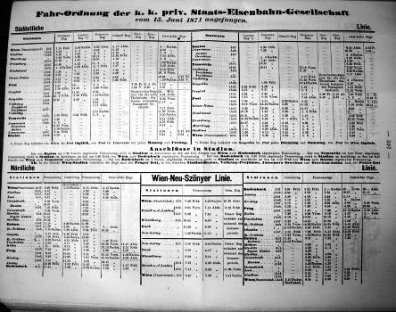Az OÁV délkeleti vonalainak menetrendje 1871 június 15-től (“Centralblatt für Eisenbahnen und Dampfschiffahrt der oesterreichisch-ungarischen Monarchie”. Nr. 53. Wien. 1871.)