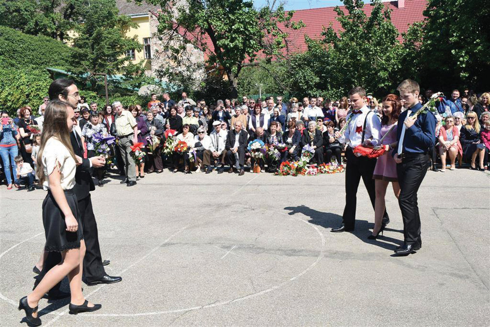 “Úgy éljetek, hogy minden napotok ajándék legyen azok számára, akikkel együttéltek! Próbáljátok szebbé tenni mások életét!” – szólt a ballagókhoz ft. Szilvágyi Zsolt józsefvárosi plébános, arra bíztatva őket, hogy legyenek elég bátrak ahhoz, hogy ne tagadják meg Istent, őrizzék meg szép anyanyelvünket, értékes kultúránkat, és fontolják meg alaposan, mielőtt az árral sodródva elhagynák a szülőföldjüket, majd nt. Fazakas Csaba esperes lelkipásztorral együtt áldotta meg az elballagó nemzedéket és az egybegyűlteket.