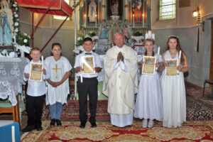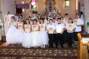 Mindhárom településen a bevonuló elsőáldozásra jelölteket Ft. Heinrich József fogadta, aki elmondta: közösségünknek mindig vannak alkalmai ünnepelni és örülni, a gyerekek felkészültek a mai örömünnepre, amikor Jézus barátai lesznek. “Ma jelen vannak itt szüleitek, a hívek veletek és értetek imádkoznak, hogy jó keresztények legyetek. Ezt a napot nem szabad sohasem elfelejteni örök emlék maradjon az életetek folyamán” – mondta a plébános.