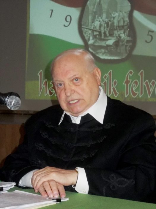 Dr. Drábik János 1956-ban első éves egyetemistaként az események résztvevője volt, majd kutatója lett. Húsznál több megjelent könyve a témáról, illetve az európai politikai helyzetről szól. Mostani előadásában az október 25-i Kossuth téri sortűzre igyekezett fókuszálni, összefüggést keresve a világpolitikai események (szuezi válság, amerikai-szovjet viszony) és a parlament előtt folyt tömegmészárlás között. Gazdag ismeretanyagát kamatoztatva olykor el-elkalandozott, mellékösvényeket is bejárt. Arra, hogy az általa említett összefüggések fedik a valóságot, számos forrásmunkát idézett, illetve említett.