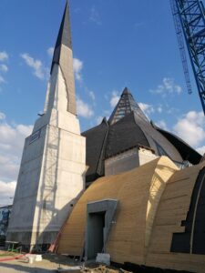 – Ha százalékban kell kifejezni az Új Ezredév Központ építésének pillanatnyi helyzetét, akkor a 90%-körüli érték tükrözi a valóságot. A látványos műveletek közül, nemrég helyeztük el a konferenciaépület kupoláját és folyamatos a tetőszerkezet kivitelezése, illetve a terek közötti hang- és hőszigetelést biztosító anyagok elhelyezése is. A fentiek mellett készülünk egy másik igen látványosnak ígérkező művelet megvalósítására – a szárnyak elhelyezésére. A szárnyakat kivitelező karánsebesi cég egy-két hét múlva kezdi el, elsőként az északi tornyon, a szárnyak elhelyezését. A következő munkálatok elvégzésére is jelentős összegre van szükségünk, bízunk abban, hogy beérkezik a támogatás és jövő tavasz végéig befejezhetjük az építkezést.