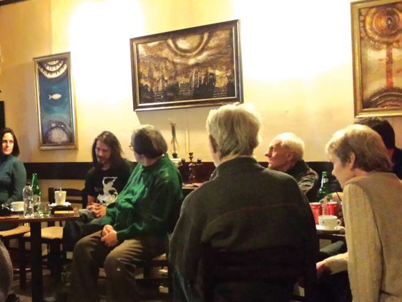A Kafka Kávézóban szervezett legutóbbi közösségi rendezvényen Bajkó Attila temesvári festőművésszel találkozhattak az érdeklődők. A Festők faggatása sorozat meghívottja egyike azoknak a Temesváron megtelepedett alkotóművészeknek, akinek sikerül egyéni stílusával, és a technikák harmonikus ötvözésével hagyományos értékeket közvetíteni a modern világ- ban. A rendkívüli érdeklődés közepette Mátray László házigazda moderálásával megtartott találkozón a festőművész eddigi életútjáról, mestereiről, a megélt vagy elképzelt életmesékről, az eddigi próbálkozásokról a hiteles és egyedi művészi megnyilvánulás irányába megtett útról beszélt. A mesékhez való kapcsolódásáról szólva, Bajkó Attila kifejtette meggyőződéset, mely szerint: „életünk minden napja egy kisebb mese, ugyanakkor vannak nagy mesék, amelyben mindenki megkapja a maga helyét. Ragaszkodom a mesékhez, mert úgy hiszem, hogy aki nem szakad el a meséktől, nem szakad el a benne levő gyermektől. Az én agyamban festés közben születik meg a mese. Soha sem dolgoztam úgy, hogy először vázlatot csináltam, majd azt egészítettem ki, azt tartom jónak, hogy az ötletet mindjárt, azon frissiben megfessem. Minél frissebb, annál őszintébb. Meggyőződésem, hogy a mesék szebbé, tartalmasabbá teszik az életünket. Ha megértjük a mesék sok ezer éves szimbolikáját, minden akadályon könnyebben haladhatunk át az életben. Saját meséim nem csak mesék, próbálok az életből ihletődött hétköznapi történeteket is megosztani az emberekkel.”