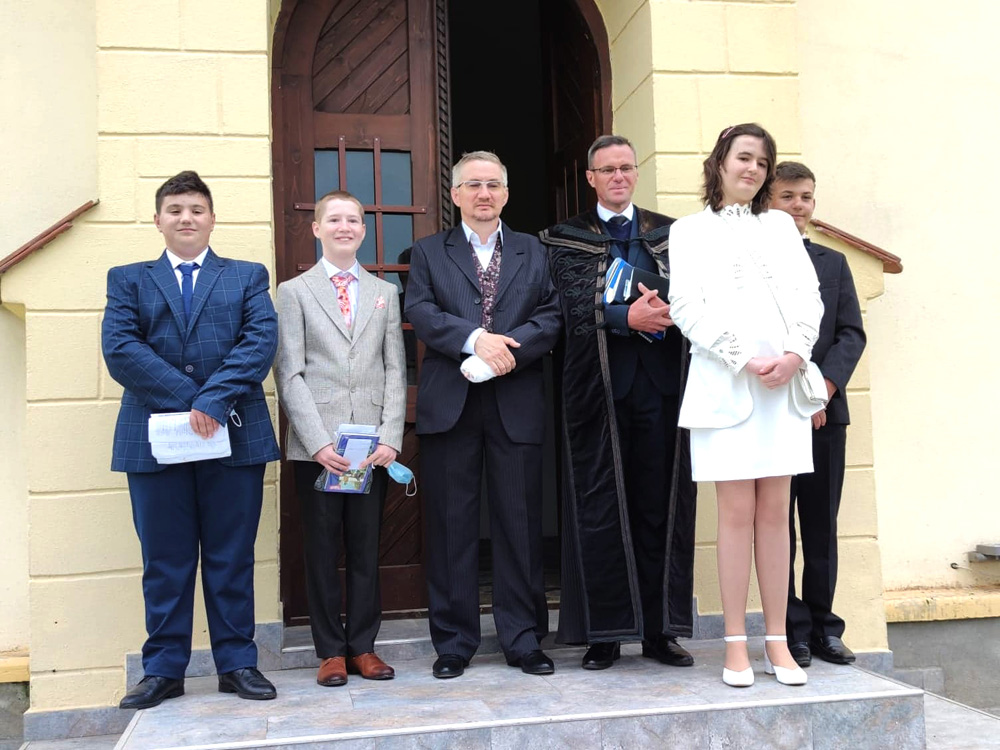 Temesváron az Új Ezredév egyházközség 1999-es megalakulása óta számos fiatal konfirmált. Először a közösség első otthonában, a Negruzzi utcai megviselt állagú imaházban, később az új templom építőtelepén, a szabad ég alatt, majd az egyik félkész épületben, a vakolatlan falak között tettek bizonyságot hitükről a gyülekezet fiataljai. Idén a járványügyi szigorú korlátozások, vesztegzárak, gyülekezési tilalmak sem akadályozták meg a fiatalokat abban, hogy felkészüljenek a konfirmációra, a lelkipásztori útmutatás szerint – időnként a technika segítségével – ismerkedtek a Szentírással, sajátították el a Heidelbergi káté alaptételeit és a református egyház és nemzetünk történetének fontosabb mozzanatait. Az alapos felkészülést követően, végre a pillanat életre szóló fontosságához méltó körülmények között, a Makovecz Imre által tervezett gyönyörű templomban fogadta körébe a gyülekezet a fiatalokat, akik első alkalommal részesülhettek az úrvacsora kegyelmében. Nt. Gazda István lelkipásztor irányításával Fazekas Róbert, Makkai Zsuzsanna Eszter, Nagy-György Csaba, Papp Izabella, Povian Alessia és Török Kinga tettek bizonyságot hitbéli megerősödésükről a konfirmáció által. A rendezvény ünnepi hangulata megteremtéséhez járultak hozzá Bordos Csilla zongoraművész és Vinczi Annamária énekes, akik zongorakísérettel előadott, alkalomhoz illő összeállítással örvendeztették meg a résztvevőket. Ciurtin Viorel kántor, orgonaművész, aki a templomi énekek elsajátításában és előadásában segítette a konfirmáló fiatalokat, az ünnepség keretében a templom új orgonáján adta elő több kortárs zeneszerző darabját.