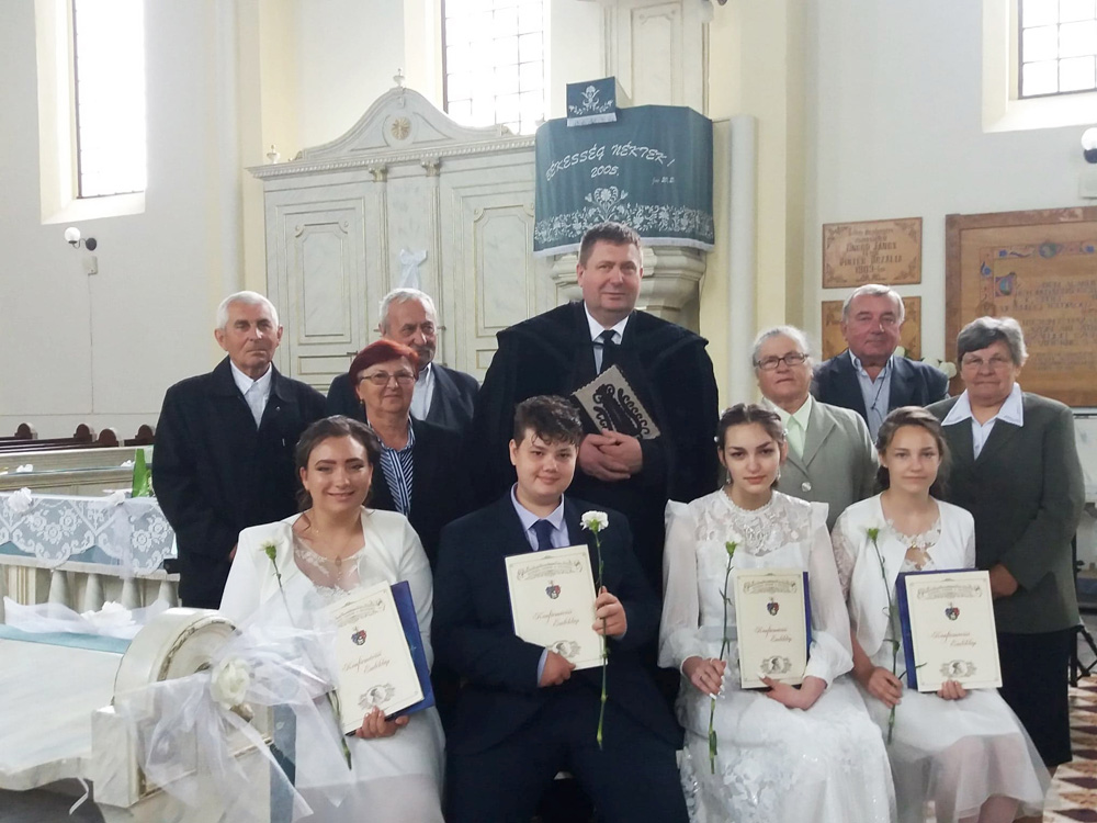 Idén május 16-án 4 ifjú, három leány és egy fiú állt ki a gyülekezet és Isten színe elé a hitéről vallást, hűségéről pedig fogadalmat tenni Végváron. A népes gyülekezet lélegzetvisszafojtva hallgatta az ifjak bizonyságtételét, akik név szerint a következők: Gálfi Natália, Mátyás Andrea, Muresán Eduárd és Szarvas Edina Friderika. Szép bizonyságát adták a Krisztus tudományában való jártasságnak. A presbitérium oklevél és református énekeskönyv ajándékban részesítette őket, majd elénekelték a Szent hitünkről vallást tettünk című éneket. A gitár tanfolyamra járó gyerekek az Ez az a nap című énekkel köszöntötték őket a lelkész és a gyülekezet kíséretében. Ők pedig mindenki meglepetésére a Ne aggodalmaskodjál kezdetű éneket kánonban énekelték el, ezzel köszöntve az ünneplőket. Nagyon szép és megható konfirmáció ünnepünk lehetett a hosszú hónapok bezártsága után. Isten mindeddig megőrizte keresztény népünket és négy ifjú hitvallást tevővel gyarapodtunk is. Egyedül Istené a dicsőség!