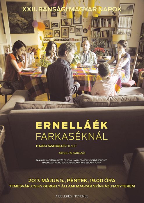 Május 5-én, pénteken a 19 órakor a nagyteremben ERNELLÁÉK FARKASÉKNÁL, Karlovy Vary-i díjnyertes magyar film vetítése a XXII. Bánsági Magyar Napokon (angol feliratozással), Tankó Erika és Szilágyi Ágota volt temesvári színésznők szereplésével. A BELÉPÉS INGYENES