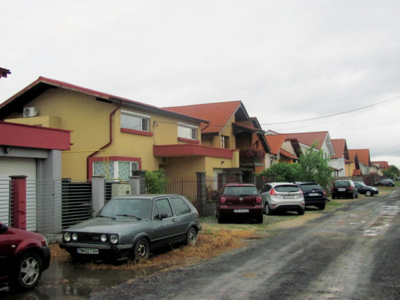 Kádár György alpolgármester és a Rad Dan által vezetett önkéntes tűzoltó csoport – Bujdosó András és Suciu Károly – Tadeschi Sorin szép új házának udvarából szivattyúzák ki a belvizet