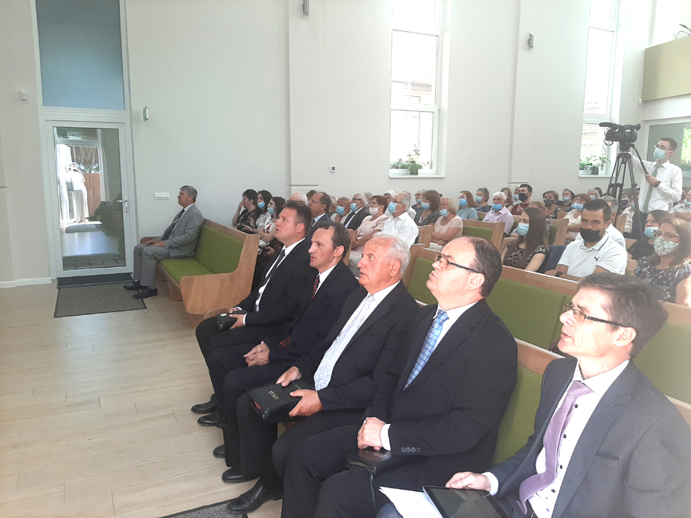 A címben idézett szavak, vagyis, hogy egyedül Istené a dicsőség, illetve a latin nyelvű soli Deo gloria kifejezés több alkalommal is elhangzott június 27-én, vasárnap délelőtt a temesvári magyar baptista gyülekezet ünnepi istentiszteletének keretében, amelyet az új imaház hivatalos átadása alkalmából tartottak. A Drubeta utcai tágas, modern, ugyanakkor nagyon családias imaterem főbejáratánál Boros Róbert helyi lelkipásztor vágta el a fehér szalagot, ezt követően vonultak be az istentiszteleten szolgáló lelkipásztorok: Rajna Ottó tordai lelkipásztor, a Romániai Magyar Baptista Gyülekezetek Szövetségének főtitkár helyettese, Bálint Pál ny. lelkipásztor, dr. Sallai Jakab, az aradi Reménység Baptista Gyülekezet lelkipásztora és Demeter Sándor temesvár-belvárosi református lelkész. – Hálát adunk a testvéreink áldozathozataláért, azért, hogy minden bajtól és veszélytől mentesen elvégezhették az építkezés munkálatait azok, akik erre hivatottak voltak. Most, amikor ennek az imaháznak az ajtaját megnyitjuk, mindenekelőtt Isten előtt szeretnénk megnyitni. Kérünk, Urunk, hogy szenteld meg az épületet testvéreink szent élete által – hangzott el Boros Róbert lelkipásztor kezdőimájában.