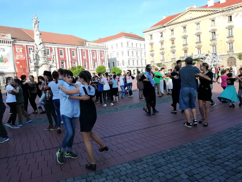 Szintén a hagyományápolás jegyé­ben kaptak tág teret a bemutatkozásra a bánsági néptáncmozgalomban részt­vevő és a meghívott tánccsoportok. A fiatalabb táncosok és a tapasztaltabbak által bemutatott nagyszínpadi produkciókat megtekintve örömmel láthatta mindenki, hogy továbbra is lankadatlan az érdeklődés a Temesközben és a tágabb régióban is a gazdag és különleges tánchagyományunk iránt, ugyan­akkor a produkciók tükrözték az ok­tatók, irányítók elkötelezettségét az autentikus tánchagyomány megismer­te­tése és színpadra állítása iránt. Rend­­kívüli látványt és különleges élményt biztosított a Jenő herceg teret betöltő nézőknek a néptáncosok villámcsődülete, amelynek keretében hir­telen felcsendültek a magyar dallamok, és a táncosok páronként, majd akár egy táncházban, a résztvevők közül is so­kan kapcsolódtak be a nagy közösségi táncba.