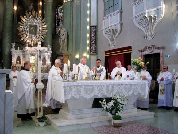 E jeles, 250 éves jubileum alkalmából az elmúlt csütörtökön, június 8-án egyházmegyei zarándoklatra került sor a radnai kegytemplomhoz. Excellenciás Roos Márton megyés püspök meghívására az ünnepi liturgiát Excellenciás Dr. Német László SVD nagybecskereki főpásztor mutatta be, koncelebrált dr. Gyulay Endre ny. szeged-csanádi püspök. A szentmisén jelen volt az erdélyi ferences rendtartomány tartományfőnöke és a rendi elöljáróság, a temesvári egyházmegye papságának népes csoportja, valamint több erdélyi és anya­országi lelkipásztor.