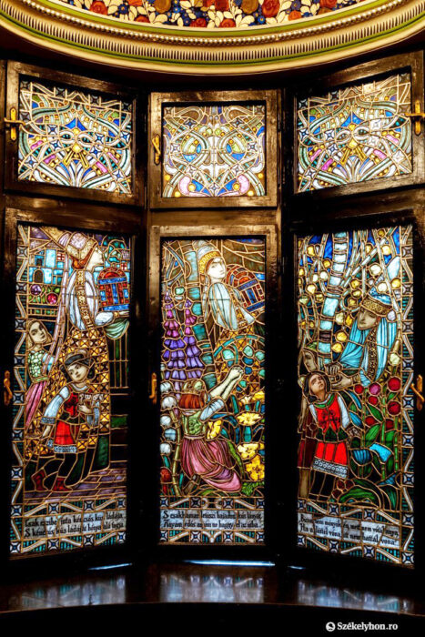 És ma itt állunk az utolsó szögig felújított Kultúrpalotában, és gyönyörködünk az erdélyi szecesszió legmonumentálisabb épületének részleteiben, és az egész magával ragadó, ragyogó akadálytalanul sugárzó szépségében.