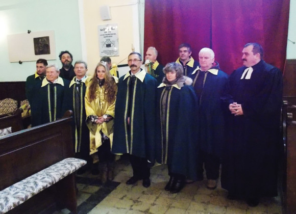 Az evangélikus templomban megtartott ceremónia keretében Kisuczky Éva mézki­rálynő hatalmas pallossal ütötte lovaggá a lo­vagrend újabb hat tagját, ugyanakkor tisz­teletbeli tagságot nyertek nt. Kovács Zsombor házigazda lelkipásztor és Tasi József képzőművész, aki a művészetek mel­lett, egyre biztonságosabban halad báró Ambrózy Béla nyomdokában. A mézlovag­rend tiszteletbeli tagja, az elismert bánsági képzőművész elmondta, hogy a természethez való visszatérés jegyében és családi hagyo­mány folytatásaként kezdett el foglalkozni a méhekkel, majd fokozatosan hatalmasodott el rajta a méhészkedés szeretete, és meg­győ­ződését tolmácsolta, mely szerint “a mű­vész­kedés és a méhészkedés kitűnően egészítik ki egymást”. Arról nem beszélve, hogy a mé­hektől rengeteget tanulhat az ember, hiszen a méhek világa a teljes harmóniáról és ki­egyen­súlyozottságról, a pontos munkavég­zés­ről és munkamegosztásról szól. “Biztos vagyok benne, hogy az emberiség rengeteget tanulhatna a méhektől” – mondta a mé­hész művész.