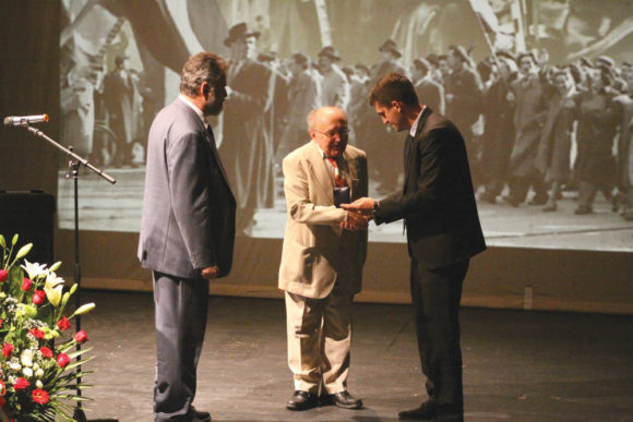 Az 1956-os forradalom és szabadságharc 60. évfordulóján a Temesvári Csiky Gergely Ál­la­mi Magyar Színház nagyt­er­mé­ben szervezett ünnepi dísz­elő­adás­sal emlékeztek meg törté­nel­münk talán legkiemelkedőbb húsz napjáról, amikor a magyar nemzet, a nép felemelte fejét és szembeszállt a világ akkori egyik legnagyobb birodalmával. A Magyarország temesvári tisz­teletbeli konzulja, Tamás Péter kezdeményezésére és az RMDSZ-szel, az Erdélyi Magyar Nemzeti Tanáccsal, a Várbástya Egyesülettel, a Szórvány Alapít­vánnyal együttműködve, szá­mos bánsági magyar közéleti szemé­lyiség részvételével megszer­ve­zett ünnepségen Tamás Péter tisz­teletbeli konzul az ‘56-os for­radalom a mának, a mai magyar embereknek szóló üzeneteként fo­galmazta meg a viszonyu­lá­sok, az értékek felül­vizs­gálatá­nak szükségességét: “….fel kell tennünk a kérdéseket: hogyan is állunk szabadságunkkal, érté­keink­kel, vállaljuk-e az áldozat­hozatalt, felvállaljuk-e kisebb­ségi sorsunkat?