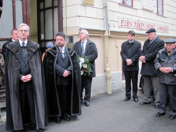 Az ünnepi rendezvény záró­moz­zanataként az emlékezés ko­szorúit helyezték el az emlék­táb­lánál a református egyház­me­gyét, a belvárosi egyház­köz­séget és az RMDSZ-t képviselő tiszt­ség­viselők.