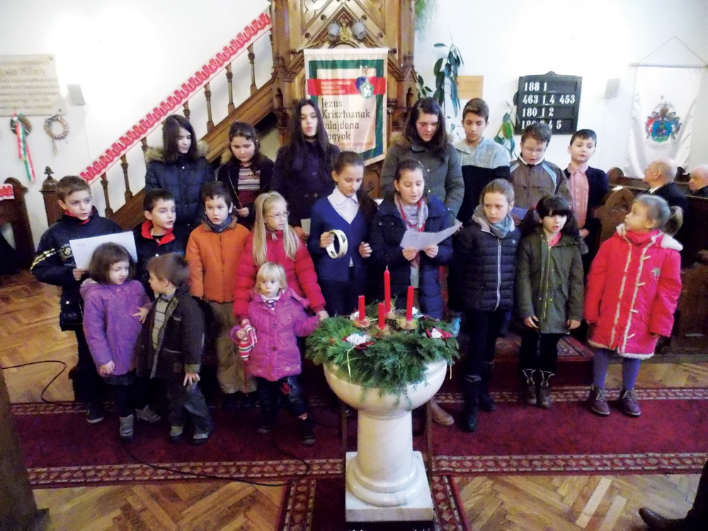 Advent negyedik vasár­nap­ján, a belvárosi református temp­lomban ünnepi istentisztelettel folytatódott a forradalmi meg­emlékezések ­soro­za­ta. Az ünnepi alkalom alaphan­gu­latát a gyüle­kezet vasárnapi iskolás gyerme­kei adták meg, akik dr. Demeter Enikő és Fazakas Enikő vallás­tanár irá­nyí­tásával, a karácsonyi csoda­várás szellemében össze­ál­lított énekes-verses összeállítást mu­tattak be. A történelmformáló időkre emlékeztető szószékről Tőkés László hirdette Isten igé­jét, aki a huszonhat esztendővel ezelőtti, az forradalmi napokat megelőző szolgálati alkalmakon felöltött palástban – amelyet il­letéktelen kezek akartak letépni 1989-ben vállairól – tolmácsolta a Szentírás üzeneteit a nagy­számú résztvevőnek. Az ige­hir­de­tő a születés csodájára való várakozást és lelki felkészülést a hithez való hűség e megnyil­vá­nulásait említve, a 1989-es ad­vent történéseire emlékezett, ami­­kor a túlélésre berendez­ke­dett, a megfélemlítettségben is összetartó, a lelkipásztor védel­mé­re felzárkozó gyülekezet a mindennapos zaklatásnak, a gyü­lekezeti közösség szétrombolá­sának, az egyháztagok szemé­lyes szabadságuk elvesztésének voltak kitéve. “Remegő lélekkel gyültünk össze alkalomról alka­lomra, és annyi idő után újból meg­tapasztaltuk, hogy velünk az Isten, és ha Isten velünk, kicsoda ellenünk? Ez a bizonyosság ve­zetett akkor is, és ez kell vezesse mindenkor a hívő embert, mert tudjuk, hogy minden elmúlik, de az isten igéjének igazsága örö­kké megmarad. – mondta Tőkés László. – A fenyegetésnek, a terrornak, a zsigeri félelemnek ér­zése hatotta át akkori karácso­nyunkat, sötétség telepedett az országra, és sötétség lopakodott a lelkünkbe is” – elevenítette fel emlékeit az igehirdető.