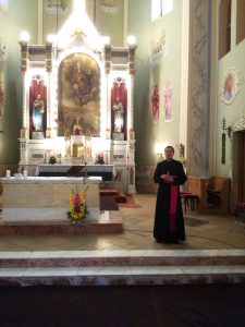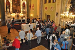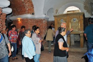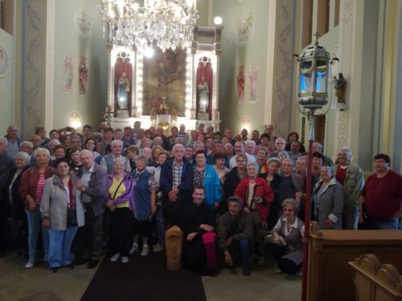 A Bartók házaspár, Béla és Zsuzsanna, Keresztúri Mária, Lepus Enikő tanítónő és a néptáncosok szülei közül verbúválódott lelkes csapatnak köszönetet mondva a szíves vendéglátásért újabb élményszámba menő látogatásra indult a népes temesvári csoport a nagyszentmiklósi templomba, ahol ft. Andó Attila lelkipásztor mutatta be a gróf Nákó Sándor által magánvagyonából felépített istenházát, és ismertette történetét, majd a templom alagsorában levő sírhelyeket tekintették meg.