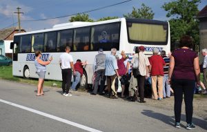 Az élmények záróakkordja: a nedves füvön elakadt buszt taszítani kellett