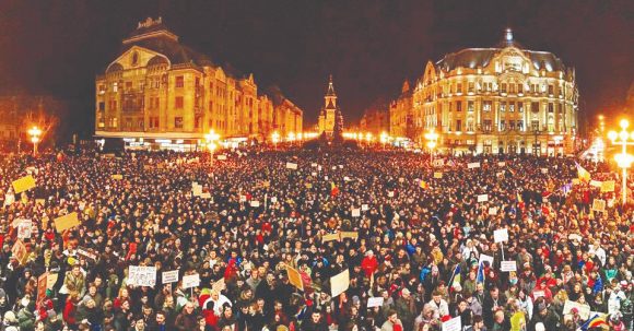 Az elmúlt napokban is országszerte folytatódtak a tüntetések. Vasárnap több mint hatszázezres kormányelleners tüntetés volt. A szociálliberális Grindeanu-kabinet lemondását követelő tüntetők Liviu Dragnea, a Szociáldemokrata Párt (PSD) elnöke, Sorin Grindeanu miniszterelnök és Florin Iordache igazságügyi miniszter távozását követelték, arra hivatkozva, hogy nem bíznak többé egy olyan kormányban, amely az éj leple alatt, az országot kész tények elé állítva, sürgősségi rendelettel enyhített a büntetőjog korrupcióellenes szigorán. A tiltakozó megmozdu- lások az ország számos nagyvárosában folytatódtak hétfőn, legfőképpen azért, mert – noha a kormány vasárnap hatálytalanította a vitatott rendeletét, de a kormánykoalíció nem ismerte el, hogy bármilyen hibát követett volna el, a tiltakozási hullámot külföldről pénzelt manipulációnak nevezte, és a kialakult helyzetért Klaus Iohannis államfőre próbálja hárítani a felelősséget. A történések kísértetiesen hasonlítanak a 27 évvel ezelőtti helyzethez, amikor a Temesvári Kiáltványban foglaltak 8. pontja szerint nem foglalhattak volna el felelős politikai tisztségeket a volt nómenklatúra tagjai. Akkor a történelemben bányászjárásként is- mert véres megtorlással akasztották meg az ország demokratizálódását és zárták le a jogállamiság kialakulásához vezető utat. Most a bőrüket mentő mai politikai vezetők az ígéreteikkel megtévesztett választók ellentüntetésével igyekeznek a megmozdulásokat ellehetetleníteni. Hétfőtől a kormányt támogatók a Cotroceni palotánál, az elnöki hivatal előtt demonstráltak az államfő ellen. A PSD előhúzta a szorult helyzetben lévő hatalom által mindig előszeretettel bevetett idegen hatalmak manipulására utaló kártyát. Nem úszta meg Soros György és a multinacionális cégek sem.
