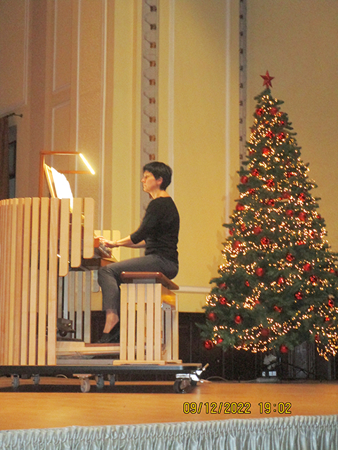 Az ünnepi műsorban elsőként dr. Miklós Noémi kolozsvári orgonaművész tolmácsolta César Franck Sortie c. művét, majd az aradi egyesített baptista kórus lépett a színpadra. Juhász Zsolt és Szűcs János vezényletével hat vallásos éneket adott elő. Az Ó, jöjjetek hívek kezdetű latin himnusz utolsó két szakaszának a refrénjét az egész terem együtt énekelte. Jó volt hallani! A két rész között Szabó Sándor baptista lelkipásztor osztotta meg a gondolatait a közönséggel.