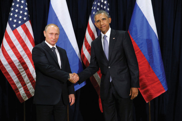 A hangulat látnivalóan nem volt oldott az amerikai és az orosz elnök között. A Krím annektálása és a kelet-ukrajnai orosz beavatkozás miatt befagyott az amerikai-orosz viszony, csak nemzetközi konferenciákon találkozott a két elnök.