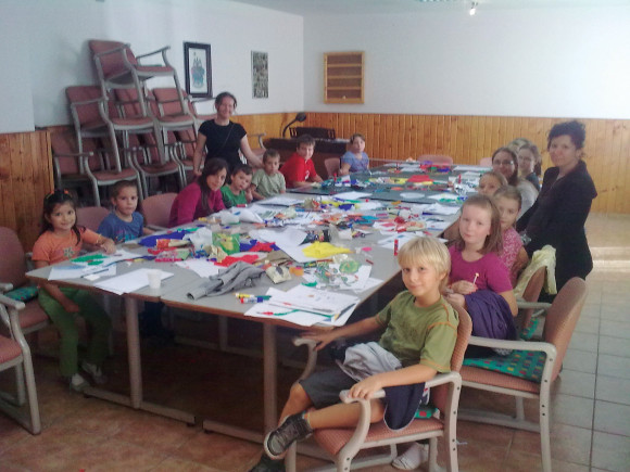 A tizenkét kicsi tanítvány már a második napon fújta a gyermekdalokat, majd a kézimunka foglalkozásokon, és szabadtéri játékokon is energiát nem sajnálva vett részt. Elképzelték és lerajzolták, hogy milyen lehet az Isten hajléka, amelyet Mózesék építettek meg a pusztában. Az aranyozott templom- tervek maguk is egy-egy téglát képviselnek a Temesváron valóban épülő templom falában, hisz ki ne örülne egy mosolygó gyermekarcnak, egy vidám énekhangnak, amely minden vasárnap kihallatszik az alagsorból?