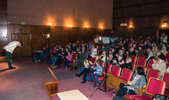 A felnőtteknek szóló Kifordulás cí­mű darabban a fiatal színművész egyetlen személyként elevenített meg minden szereplőt, különböző ka­lapokba bújva, változatos, humorosabbnál hu­mo­ro­sabb stílusban. Sőt Molnár Bence a kö­zönség egy-egy tagját is aktívan be­vonta a darabba: nagy volt a meglepetés és derültség a közönség soraiban, amikor egy-egy nézőből, még ha rövid időre is, szereplő lett! Az előadás több mint 80 érdeklődőt vonzott, és Resicabányán kívülről, Boksánbányáról is szép számmal érkeztek nézők.
