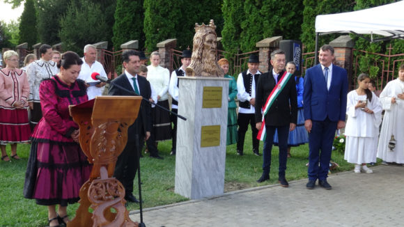 E program keretében 2019. augusztus 16-án került sor a szobor leleplezésére. A vendéglátókat Antal Péter polgármester (ő köszöntötte a vendégeket és a helybelieket) és Stoianov Miodrag alpolgármester képviselte. Beszédet mondott Závada Ferenc, az említett egyesület elnöke, Babák Mihály, Szarvas polgármestere, Faragó Péter, parlamenti képviselő, az RMDSZ megyei szervezetének elnöke, Bölöni György, Arad megyei tanácsos. A szónokok említették Szent István király kimagasló jelentőségű érdemeit a magyarság, de az egész térség történetében, az alkotmánynak tekinthető Intelmeit, valamint azt is, hogy 2000-től István királyt a konstantinápolyi ortodox egyház is szentjei sorába emelte. A szobrot ft. Czeglédi Ferenc pécskai esperes-plébános szentelte fel.