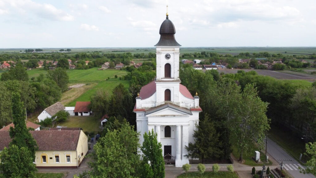 Drónfelvétel Magyarittabé 750 férőhelyes templomáról