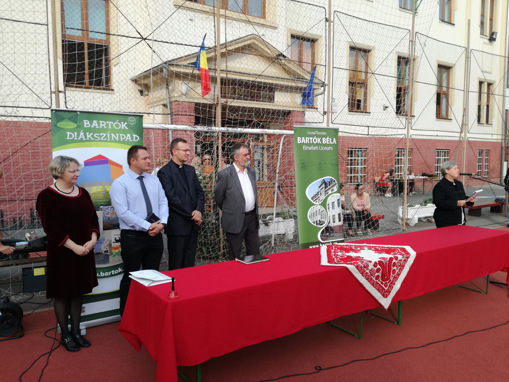 A Lépésről lépésre osztályban Palkó Margit és Tamás Emese tanítók Albert Ákos, Baloi Paul Erik, Csíki Anamaria, Darida Antónia Beatrice, Dávid Náthán Krisztián, Divin Botoiu Leon, Doiciu Amelia Gabriella, Dorner Márk, Gönczi Fórika Attila, Jurca Erik, Kovács Dalma, Kovács Ádám, Lukács Erika, Maskulik Zsolt, Miclea Lóránt Alexandru, Miculescu Dragila Maria, Nagy Teodóra, Palkó Csaba, Péter Nimród, Raducan Amalia Olivia, Sántha Mária Denisa, Tamási Erik Jenő, Téglássy Simon Jakab, Tóth Izabella Mária, Zabos Krisztina kisdiákokat fogják elkalauzolni a következő években a tudás világába. A Hagyományos előkészítő osztály tanítója Vinczeffy Kinga, az osztály tanulói: Ari Török Kimberly, Bálint Anna Kate, Balogh Maja Gabriella, Bekő András, Demjén Debora Viktória, Gábor Dominik, Ghindauana Daria Giulia, Györfi Anna Kate, György Mihai Andrei, Illés Stefan, Lázár Tibor Lóránt, Marconescu Roland, Márton Emma, Mészáros Levente Carlos, Orgonás Ágnes, Szász Tímea, Szentpéteri Lenke, Szövérdfi Szép Noémi, Telegdi Eduárd Denis, Varga Madalina Sara és Volosciuc Alma Alexandra. Ft. Szilvágyi Zsolt kanonok, józsefvárosi plébános és nt. Demeter Sándor lelkipásztor az Íge szavait osztották szét útravalóként az új tanévben az egybegyűlteknek, és Isten áldását kérték az új tanévre és résztvevőkre, majd nemzeti imánk közös eléneklésével zárult az új tanév megnyitója a Bartók Béla Elméleti Líceumban.