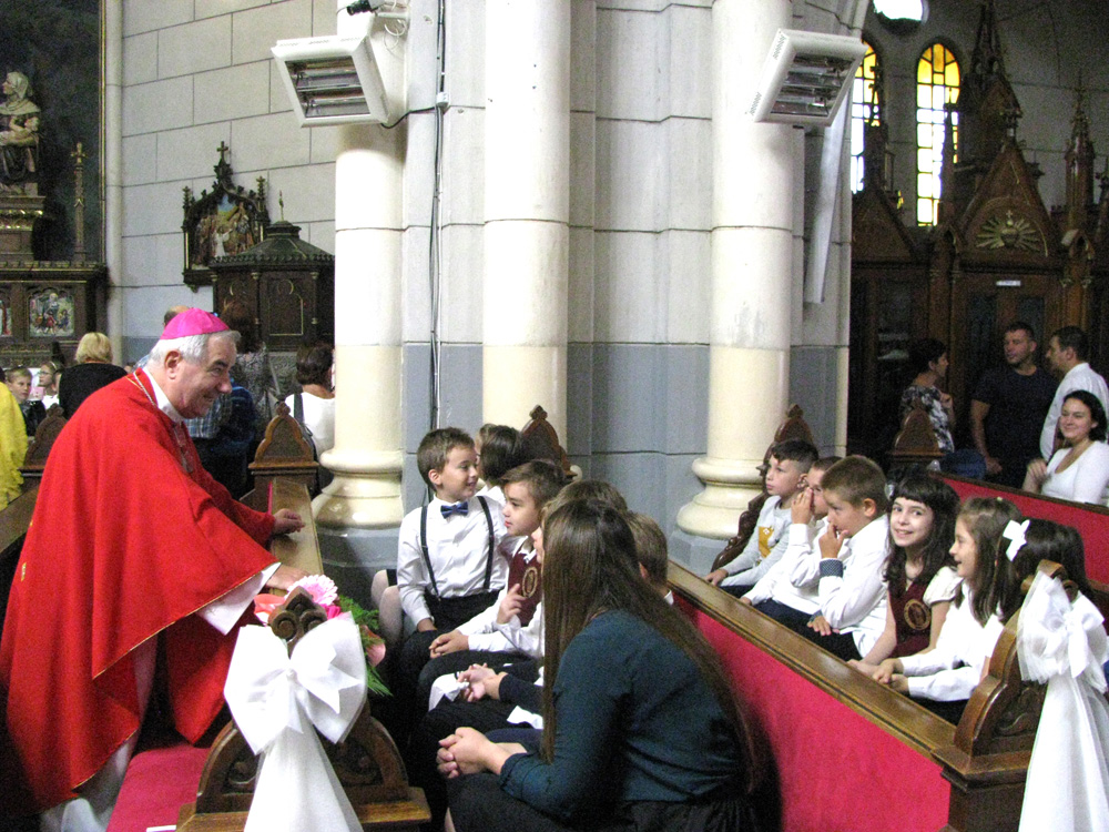 Az iskolai évnyitó szentmiséjét Pál József Csaba megyéspüspök mutatta be, aki még az ünnepség előtt arról érdeklődött a legkisebbektől, izgulnak-e nagyon az iskolakezdés miatt? Mint azt később a Főpásztor szentbeszédben összefoglalta, a gyermekek izgalma nem a félelemből, hanem az örömből és a kíváncsiságból fakad. – Az iskolakezdés elhozza a kollégákkal, barátokkal való találkozás és a tanulás lehetőségének örömét. A tanulás, a tudásban való gyarapodás óhaja hozzátartozik az ember természetéhez. Az ember válaszokat keres a saját életével, életének értelmével, az emberiség sorsával kapcsolatos a kérdéseire. A vallásóráknak nem csupán az a céljuk, hogy a tanulók ismereteket sajátítsanak el, hanem hogy ezeket az ismereteket gyakorlatba ültessék. A hit tettek nélkül halott. Kérem Isten áldását erre az iskolai évre, hogy az Ő útját követve, az Ő segítségével tudjátok ezt sikeresen befejezni – fogalmazott a megyéspüspök.