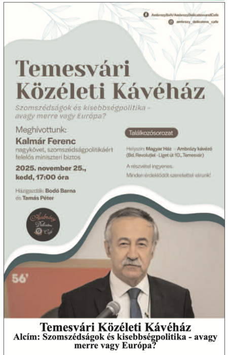 Helyszín: Magyar Ház Ambrózy kávézó / Tvár, Bd. Revoluției/ Liget út 10.