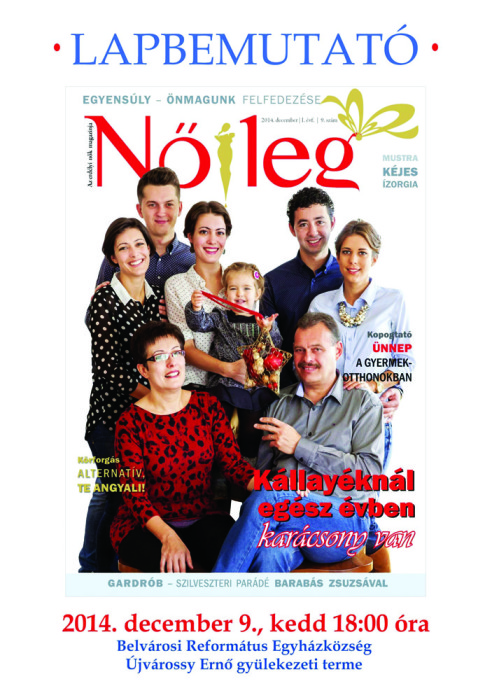 December 9-én, kedden, 18 órától a Temesvári Magyar Nőszövetség OLVASÓTALÁLKOZÓT és LAPBEMUTATÓT szervez a NŐILEG magazin szerkesztősége részére. A Belvárosi Református Egyházközség Újvárossy Ernő gyülekezeti termében (Timotei Cipariu utca 1. sz.) sorra kerülő eseményen a NŐILEG szerkesztői bemutatják az egyetlen erdélyi női magazin legújabb és eddig megjelent lapszámait. Az érdeklődők betekinthetnek a laptervezés, -készítés folyamatába, megoszthatják észrevételeiket, gondolataikat, ötleteiket a szerkesztőkkel.