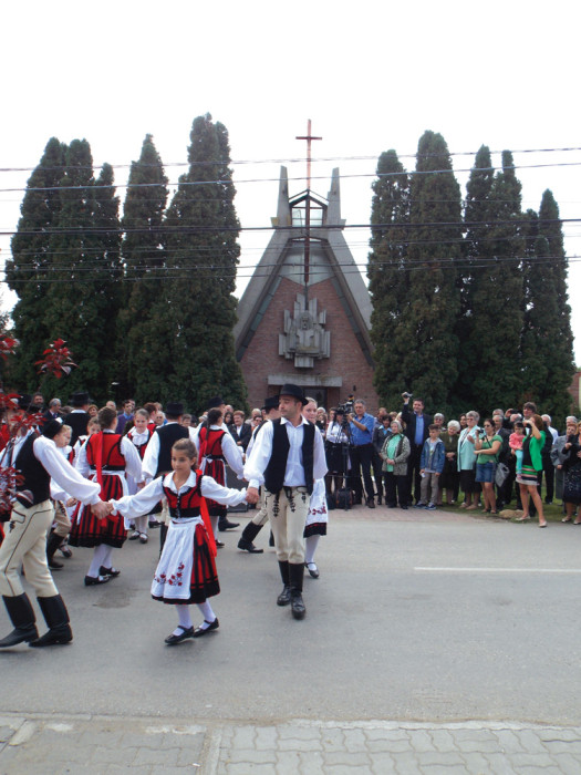 A szentmisét követően a temp­lom előtti téren piros-fekete szé­kely népviseletben már ott sora­koztak a helyi Butykos néptánc­cso­port tagjai, akik, mint azt veze­tőjük, Bálint József el­mon­dotta, idén nyáron Macedó­niában, az Ohridi nemzetközi folklórfeszt­i­válon tájegysé­gün­ket képviselték. Dénes Ildikó igazgatóhelyettes pedig Lengyel Miklós Dániel tanu­lót mutatta be az egybegyűlteknek, aki ezúttal két népdalt adott elő, az október 17-én Újszentesen meg­ren­dezendő Országos Népdalfesz­tiválon pedig majd a helyi közös­ség képviseletében lép színpad­ra.
