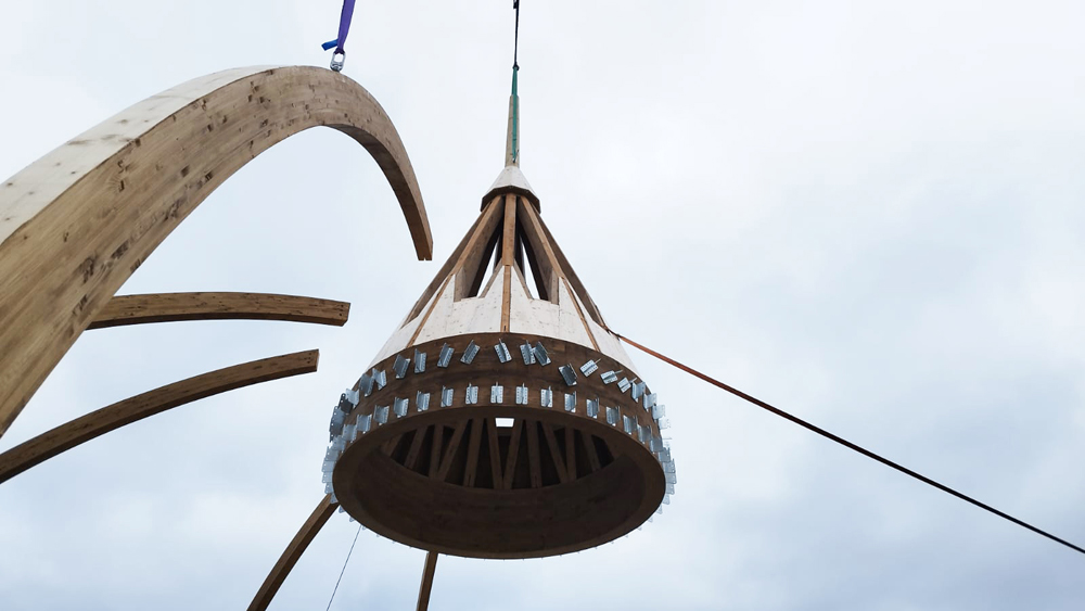 Boros József projektmenedzser elmondta, hogy a réteges hajlítottfából készült gerendák és kupola elhelyezését követően, az összekötő elemek is helyükre kerülnek, és akár már augusztus elején elkezdődhet a teljes tetőt beborító rézbádog szerelése. (m.z.)
