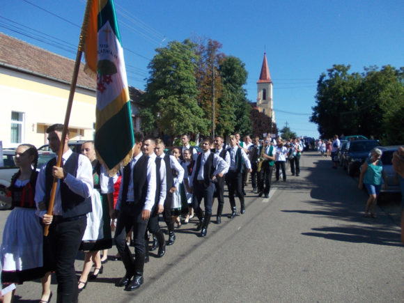 A népviseletbe öltözött fiatalok a tornateremtől indulva vonultak a művelődési otthon udvarára. Elöl Andresz József, Vinga község alpolgármestere és Matekovits Mihály haladt, majd következett a település zászlaja.
