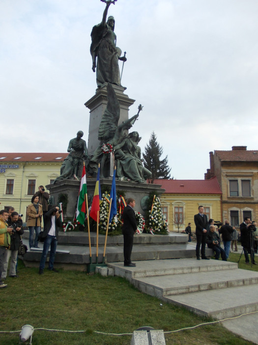 Ezt követően a megye állami szerveinek, valamint civil szervezeteknek képviselői megkoszorúzták előbb a Szabadság-szobrot, majd a román forradalom emlékművét is. Az ünnepi rendezvényt egyetlen ki­sebb incidens zavarta, a hatóságok ugyanis nem en­gedték kibontani a D. Nagy Károly által kihozott székely nemzeti zászlót.