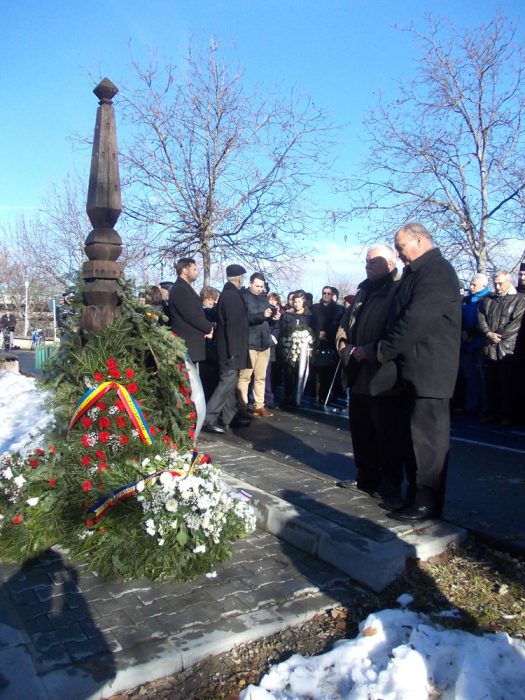 Elhangzott a Miatyánk román és magyar nyelven, majd a küldöttségek megkoszorúzták a kopjafát.