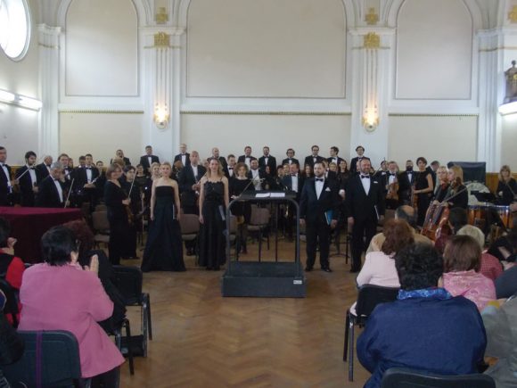 A koncertre négy kiváló fiatal szólistát hívtak meg: Oana Maria Trîmbițaș szopránt, Duffner Melinda mezzoszopránt, Paul-Ștefan Onaga tenort és Simonfi Sándor basszust. Különben Duff­ner Melinda aradi, a Csiky Gergely Főgimnázium érettségizettje – Kolozsváron vé­gezte a konzervatóriumot, jelenleg a kolozsvári Transilvania Filharmóniának a szólóénekese. Az ő fellépésének is köszönhető, hogy a Kultúrpalota renoválása miatt a Tisztek Házában ideiglene- sen koncertező aradi szimfonikus együttes előadására a terem zsúfolásig megtelt. Emlékezetes élmény volt végighall­gatni a nagyszerű koncertet.
