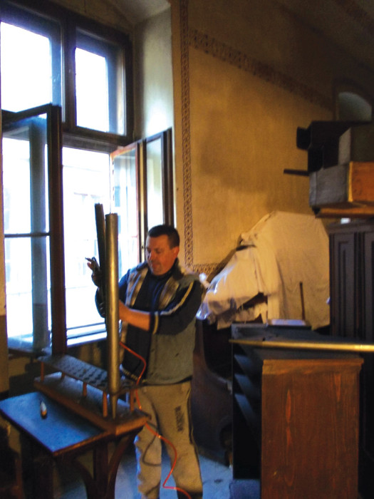 Az aradi neológ zsinagógát idén 180 évvel ezelőtt, 1834-ben avatták fel. Építője (valószínűleg) a város kétszer is megválasztott polgármestere, Heim Domokos volt. A hitközség reformátor főrabbija, Chorin Áron már a felépítéskor orgonát szereltetett be. Azt a kisméretű hangszert cserélték ki 1864-ben a most is álló hangszerre. A 14 regiszteres orgonán olvasható: Anton Dangl und Sohn. Burger. Arad. 1864. (Dangl Antal és fia. Polgár. Arad, 1864). A restaurátorok kipucolják, megjavítják a sípokat, de nagyobb javítást nem kell eszközölni a hangszeren. Bertoti Ottó szerint egy nagyon jó hangzású koncertorgona lehet egy kiváló akusztikájú teremben.