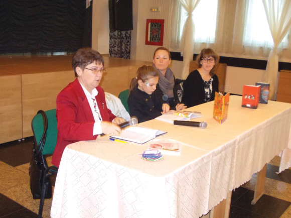Bár a válaszok érdekesek voltak, azokat részletezni is lehetett volna, szerencsére a moderátor nem időzött el azok taglalásánál. A terem ugyanis a szülők, nagyszülők mellett megtelt érdeklődő óvodás és kisiskolás korú gyermekekkel. Számukra fárasztó lett volna a „nagyok” sok beszéde. Ők sokkal jobban élvezték, hogy a versek ihletője, az immár első osztályos Böszörményi Panna rendkívül bátran, szabatosan elmondta a Csokiverset, majd kettőt el is énekelt. Ekkor derült ki, hogy a verseket Orbán Ferenc megzenésítette, azokat a kiadványhoz csatolt CD-en meg is lehet hallgatni. A Kincskereső egy kis szőke nagycsoportos óvodáslánykája, Anghel Orsolya (Király Klára óvónő tanítványa) is hasonló talpraesettséggel szavalt a közönség előtt.