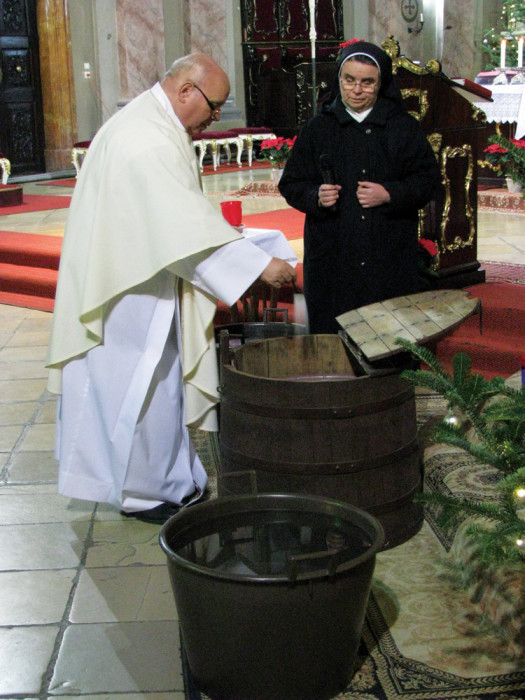 A szentmise végén az egybegyűlt hívek merítettek a megszentelt vízből, hogy magukkal vigyék otthonaikba.